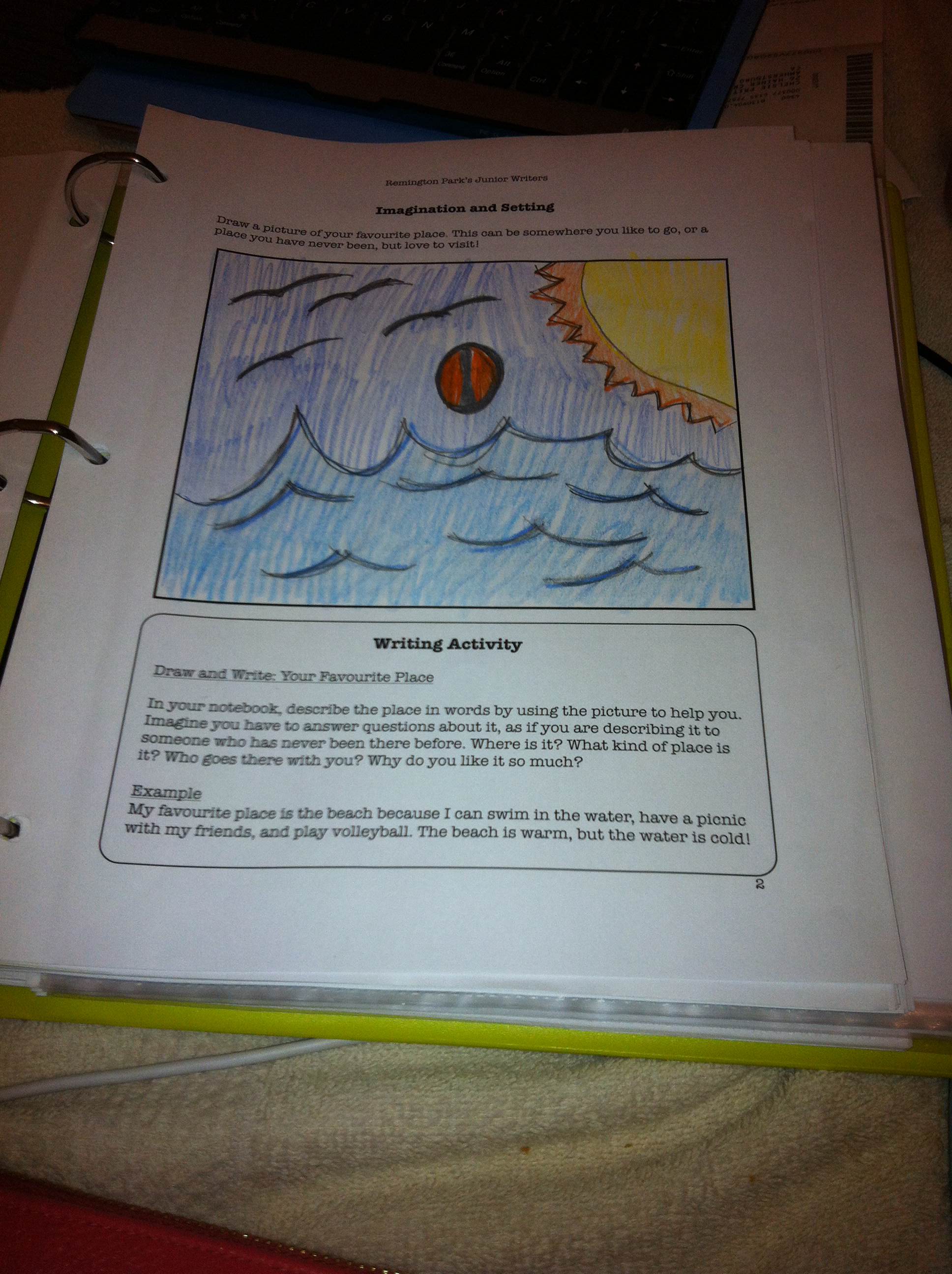In their notebooks, the kids were asked to draw a picture of their favourite place. This could have been somewhere they liked to go, or a place that they have never been, but loved to visit.